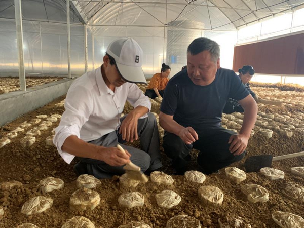 村民在專家指導下維護靈芝菌包(央廣網發 黃凌晨 攝) 產業扶貧——“小靈芝”帶來“大收益” 走進位于紅石村的靈芝種植大棚,一壟壟靈芝已經收獲完畢,被擺上了展示架,一同被展示出來的還有靈芝孢子粉、靈芝酒、靈芝盆景,一株小小的靈芝在這里變換出了不同形態。 可別小看這株手掌大小的食用菌,就在這4畝不到的大棚里,靈芝產量可達到1噸,靈芝孢子粉產量達到800斤。“產品售出后,保守收入能超過百萬元!闭f起今年的收獲,靈芝種植技術組組長張元秀滿臉笑意。 時間回溯到2019年3月,彼時,岳麓區第二批對口幫扶龍山工作隊剛在龍山落腳!霸鯓訋Т迕駛兠撠殹薄翱梢园l展什么產業項目”這兩個問題一直縈繞在他們的腦海。 空想不行,還要調查。扶貧隊邀請農業專家進行了三輪考察后,發現紅石村氣候條件適宜、水源充足,適宜種植靈芝。“靈芝種植周期較短、附加價值高且耐儲存,種植風險可控! 紅石村村民張天明今年52歲,因為身體原因不能外出務工,微薄的收入都用在了供養兩個孩子的生活和教育上,兩年前還是村里的建檔立卡貧困戶。 “小靈芝”讓他的生活發生了“大變化”。護土、澆水、靈芝維護……這些并不復雜的活計讓張天明一天能拿到100元工資!安凰闵衔曳N百合的收入,在這里一年收入就能破萬。”他笑著告訴記者,現在他的收入更多、更穩定了。 同樣開心的還有張元秀,現在他和幾個村民都掌握了種植技術,來年便可以用今年賺到的“第一桶金”繼續采購菌包、種植靈芝,將種植大棚的面積再擴大些!敖衲攴N植積累了很多經驗,明年我們就更有信心了! 走出靈芝大棚,記者注意到一塊大大的招牌——紅石田園綜合體。“這邊300余畝的地已種上了果樹,下一步還將發展觀光旅游、瓜果采摘為一體的田園綜合體。”張元秀的一番話讓人不禁遐想,幾年后,桃樹、李子樹紛紛掛果,紅石村靈芝滿園、瓜果飄香,村民們的生活也將日益甜蜜。