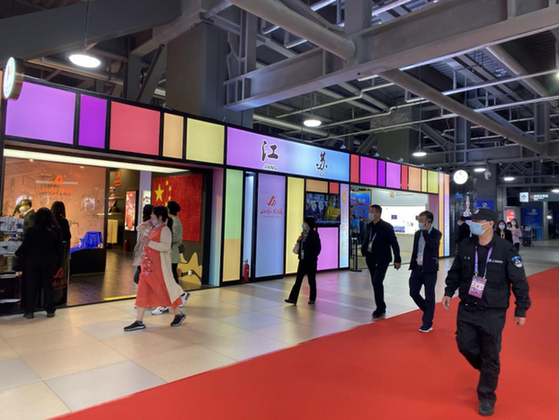 新華網南京11月7日電(龐雪。┳哌M第三屆中國國際進博會國家級步行街展示區,第一個映入眼簾的就是五彩繽紛的江蘇館。有著上千年歷史的宋錦織機,由老手藝人展示的“剝綿兜”傳統手工藝,燦若云霞的宋錦、蘇繡織品……獨具江南韻味的江蘇非物質文化遺產元素,吸引眾多觀眾前來參觀。