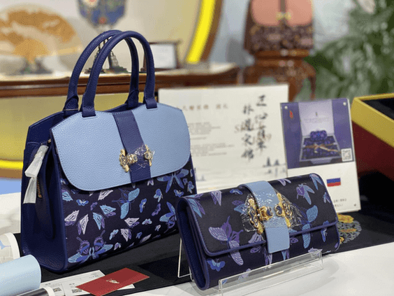 用宋錦制成的手提包、錢包(席航飛 攝) “宋錦的工藝非常精細,它的針腳非常細密,手工制作宋錦,每公分可以達到660根絲線的密度,而整個面料觸摸上去又很平整絲滑,最為難得的是,它還十分耐磨、經用。所以說宋錦是美觀性和實用性兼具的。過去宋錦是皇室貴族才能享用的,而現在,我們用宋錦制成包、衣服、絲巾等生活用品,也得到了消費者的喜愛!碧K州上久楷絲綢科技文化有限公司董事長吳建華說,“我們參加進博會,一方面是想做企業的品牌推廣,另一方面也是想做一個文化推廣,讓更多的人了解宋錦文化! |