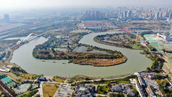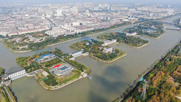 這是11月14日拍攝的運河三灣生態文化公園景色(無人機照片)。 行走沿線城市,“運河牌”已經成為各地的“先手牌”“必殺技”;窗泊蛟臁斑\河之都”,揚州做靚“運河原點”,蘇州再繪“姑蘇繁華圖”……大運河還為解決區域發展不平衡不充分提供了一把“鑰匙”,泰州被納入運河文化旅游節點城市之后,“溱潼會船”“溱湖八鮮”吸引了更多游人,文旅融合富了百姓。 江蘇省發改委負責人介紹,運河不僅串聯吳文化、淮揚文化、楚漢文化和江海文化,還溝通揚子江城市群、江淮生態經濟區、淮海經濟區三大重點功能區。因此,大運河文化帶建設也是江蘇構建“1+3”重點功能區戰略、促進區域協調發展的戰略支點。 從古至今,運河決定城市興衰,更與國運息息相關。 “要把大運河文化帶江蘇段打造成先導段、示范段、樣板段,統籌保護好、傳承好、利用好祖先留給我們的寶貴遺產,努力打造最美麗、最精彩、最繁華的江蘇名片!苯K省委書記婁勤儉強調,這不僅是彰顯中華民族文化自信的重大使命,更是推進江蘇高質量發展的重要支撐。