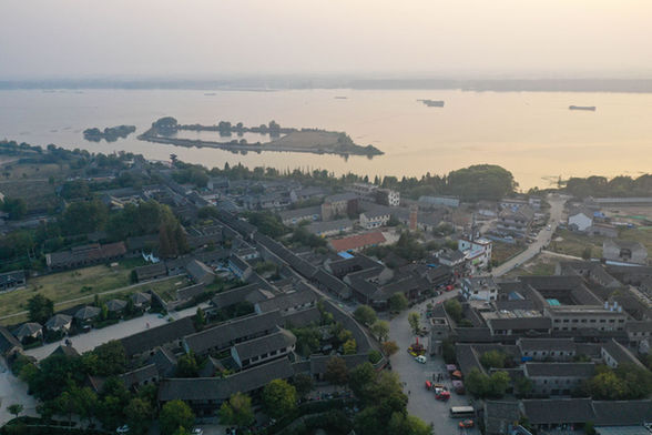 這是11月14日拍攝的運河三灣生態文化公園景色(無人機照片)。 徐州是南水北調東線在江蘇境內的最后一關,運河邊的窯灣古鎮鼎盛時曾有十多個省的商會和會館匯集。近年來,這座曾以水泥建材、電力、煤炭、化工為支柱產業的城市,一邊源頭控污、清淤疏浚,關閉100多個散貨碼頭,一邊將大運河引入腹地建起新沂港,發展內河集裝箱運輸,未來貨物到達西南、沿海和蘇南的成本可節約15%至30%。 “投入上億元治污,拆除上億元規模的產業,看起來是‘傷元氣’,實際上是為綠色發展‘增底氣’!苯紖^委書記張彤說,以生態保護的基點為高質量發展尋策問道,不斷挖掘和放大生態保護的綜合功能,綠色發展的甜頭越來越大。 除了生態倒逼,江蘇還高度重視文化引領綠色發展的積極作用。 地雄吳楚東南會,水接荊揚上下游。長江和運河在江蘇的另一個交匯點位于鎮江。西津渡自三國以來便是兵家必爭之地,也是北人南下渡江第一站。歲月變遷,北岸的古瓜洲已全部坍塌于江中,南岸則開始淤積。
