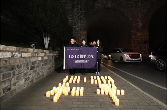 “空氣一天比一天緊張,事態一天比一天嚴重,在12月13日的早晨,我們的首都——南京終于給敵人占領了……”12月12日晚,中山門前的清冷夜色中響起低沉的誦讀聲!12·12 和平之夜”現場誦讀活動的序幕“金陵城殤”篇章在這里舉行。