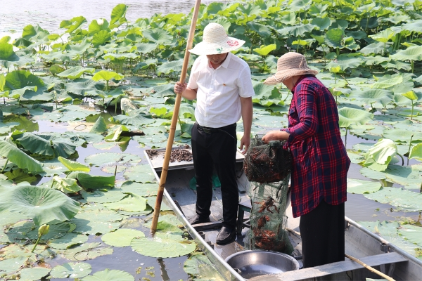 沙北村抓住國家洼地治理工程建設的東風,投入近億元資金,改善村莊人居環境,打造生態宜居村莊。夏其文說,近幾年,村里不僅在硬件上修橋建路,架設動力電源、疏浚河道,提升農業基礎設施水平,還持續培養壯大新型職業農民隊伍,讓耕地、水面向資金實力更強、種養技術更高、品牌營銷渠道更廣的能人和大戶集中,確保集體資源“保值增值”。 “我2畝多地入股村股份經濟合作社,年底分紅3700多元。以前自己種,不僅辛苦,收益也不高。現在,人從土地中解放了出來,我從事自己的特長、經營建筑行業,每年又有10萬多元收入。”夏其文說,村里現在有了荷藕種植和水產養殖兩大支柱產業,推廣荷藕套養小龍蝦等復合養殖模式、引進荷藕新品種,成立生態養殖聯盟、推廣生態養殖,推動環境保護和產品質量提高,實現了集體增收、農民增富,大伙兒的生活越來越有盼頭了。 |