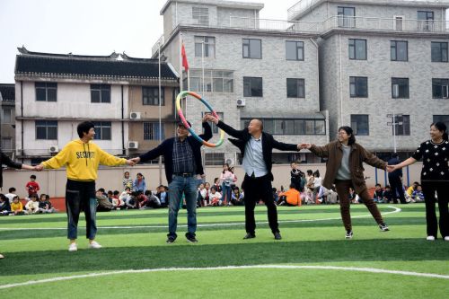 在靖江市外國語學校城南分校組織的運動會上,老師們也展現出了別樣的風采。在套圈團體游戲、接力賽跑等項目中,老師們團結協作,盡顯颯爽風姿。