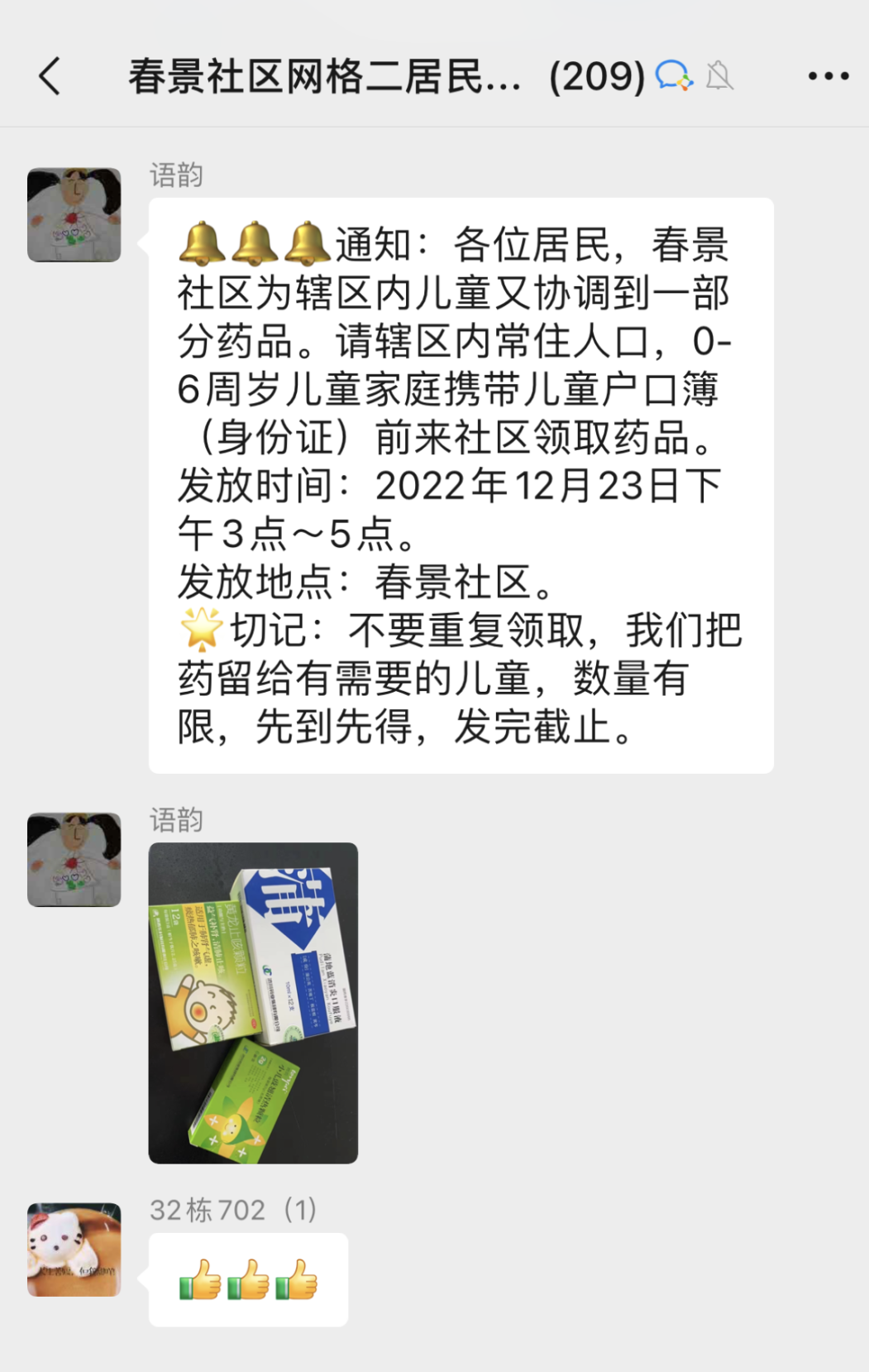 “各位居民,社區擬為轄區內6周歲以下常住兒童發放兒童藥物一份!居民憑本轄區戶籍證明帶好幼兒的戶口簿前來領取……”泰州市海陵區不少居民都在社區群里看到類似的消息,這讓很多為嬰幼兒藥品犯愁的家長心生暖意。