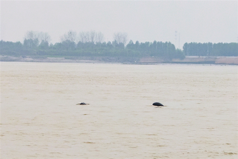 “快看,兩頭江豚出水!”4月6日下午1點多,生態環境部南京環科所組建的長江江豚調查隊成員乘坐“靖漁1號”護漁船,行至長江牧城公園段,突然發現江豚蹤跡,調查隊成員興奮地拿出相機拍攝江豚戲水的畫面。這已是調查隊在靖江第30次邂逅“豚出沒”。調查顯示,長江靖江段有超過20頭長江江豚棲居。