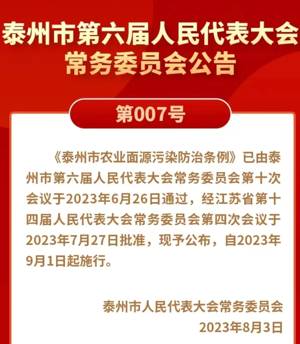 泰州市用法治路徑保護生態環境,全省首部農業面源污染防治條例9月起施行