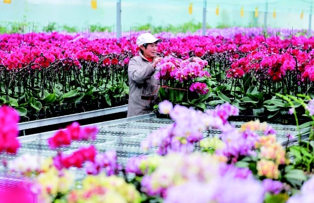 2021年,退役軍人張杰在姜堰區顧高鎮注冊成立泰州杰杰高農業發展有限公司,流轉200畝土地種植園藝花卉。其中,連棟大棚面積20畝,用于蝴蝶蘭種苗及成品花卉培育;ɑ芊N植項目不僅充分發揮了土地經濟效用,還為附近村民提供就業增收機會。 張杰介紹說,基地在顧高鎮每年都有用工,主要以當地留守人員為主,基地對村民進行花卉種植常識培訓以及組盆、花卉造型技藝培訓,目前每天有十幾個村民在基地工作。 蝴蝶蘭因花姿如蝴蝶飛舞而得名,鮮艷喜慶、寓意美好,素有“蘭中皇后”的美譽,深受泰州市民喜愛。經過幾年的探索與栽培,基地的蝴蝶蘭種植規模不斷擴大,品種不斷完善,如今已有八大系列60多個品種,其中“大辣椒”“滿天紅”“小孔雀”成為最具代表性、最受青睞的品種。 現在花卉已經進入年宵花卉銷售旺期,每天有3輛卡車來拉貨,有五六百盆七八千株的銷量。一些年輕人喜歡的白色、粉色、橙色的小清新色彩成為今年市場的新寵;匾还卜N植了15萬株蝴蝶蘭,可以滿足不同層次需求的人來選購。 科技賦能是農業高質量發展的關鍵因素。由于蝴蝶蘭在氣溫20℃左右生長最為適宜,長得更壯、顏值更高。這里的溫室安裝了數字化農業系統,可根據蝴蝶蘭生長需求自動調節相應的控溫、控濕、遮光設備,對花卉的品質、環境溫度控制均衡、穩定,大大減輕了現場管理的力度和頻次。 目前,花卉生產基地年產蝴蝶蘭和繡球等種苗40萬株、成品蝴蝶蘭15萬株,畝均產值超過20萬元。據介紹,基地將繼續推進大棚設備及溫控系統改造升級,進一步降低電能、減少農藥和化肥使用,提高畝均收益。 |