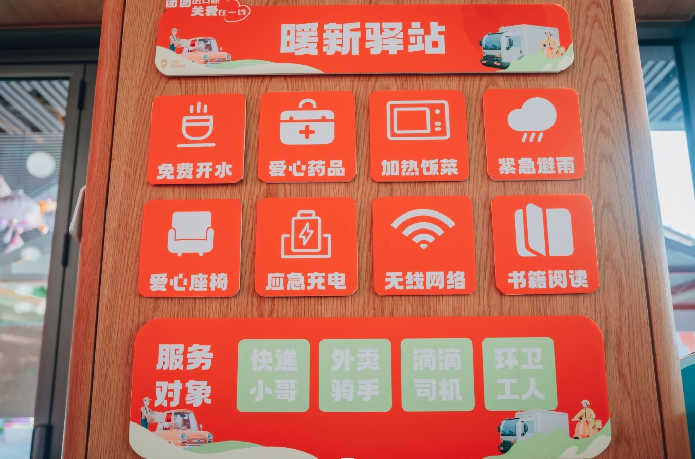 2023年以來,泰州市相關群團組織常態走近新興青年,了解現實需求,探索全方位服務舉措。“我們街道轄區有著金融廣場、萬象城等大型商圈,聚集了200多名快遞外賣小哥。前期,通過入戶走訪、座談交流等形式,了解他們在歇腳、熱水、熱飯等方面的需求,我們就在商圈周圍就近就便設置了22個‘暖新驛站’,配備微波爐、飲水機等,并提供易耗物資更換、法律問題咨詢等服務。”泰州市醫藥高新區(高港區)鳳凰街道團工委書記湯宸說道。 |
