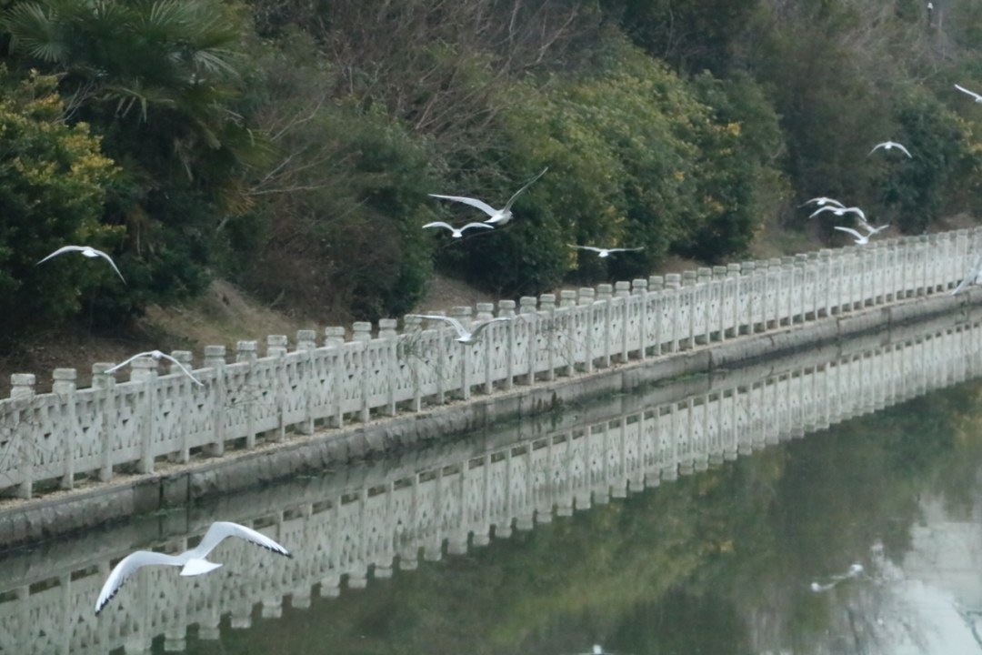 近日,泰州鳳城河上云集了大量水鳥,這種鳥渾身披著潔白的羽毛,翅尖羽毛逐漸轉黑,鳥喙頂端黑色、后部呈紅色,雙腳也呈鮮艷的紅色,它們時而展翅高飛、時而俯身滑翔。這些鳥就是列入《世界自然保護聯盟》2012年瀕危物種紅色名錄低危鳥類的紅嘴鷗。紅嘴鷗對生態環境的要求非常高,常棲息于平原和低山丘陵地帶水質好的地方,以魚蝦、昆蟲為食。