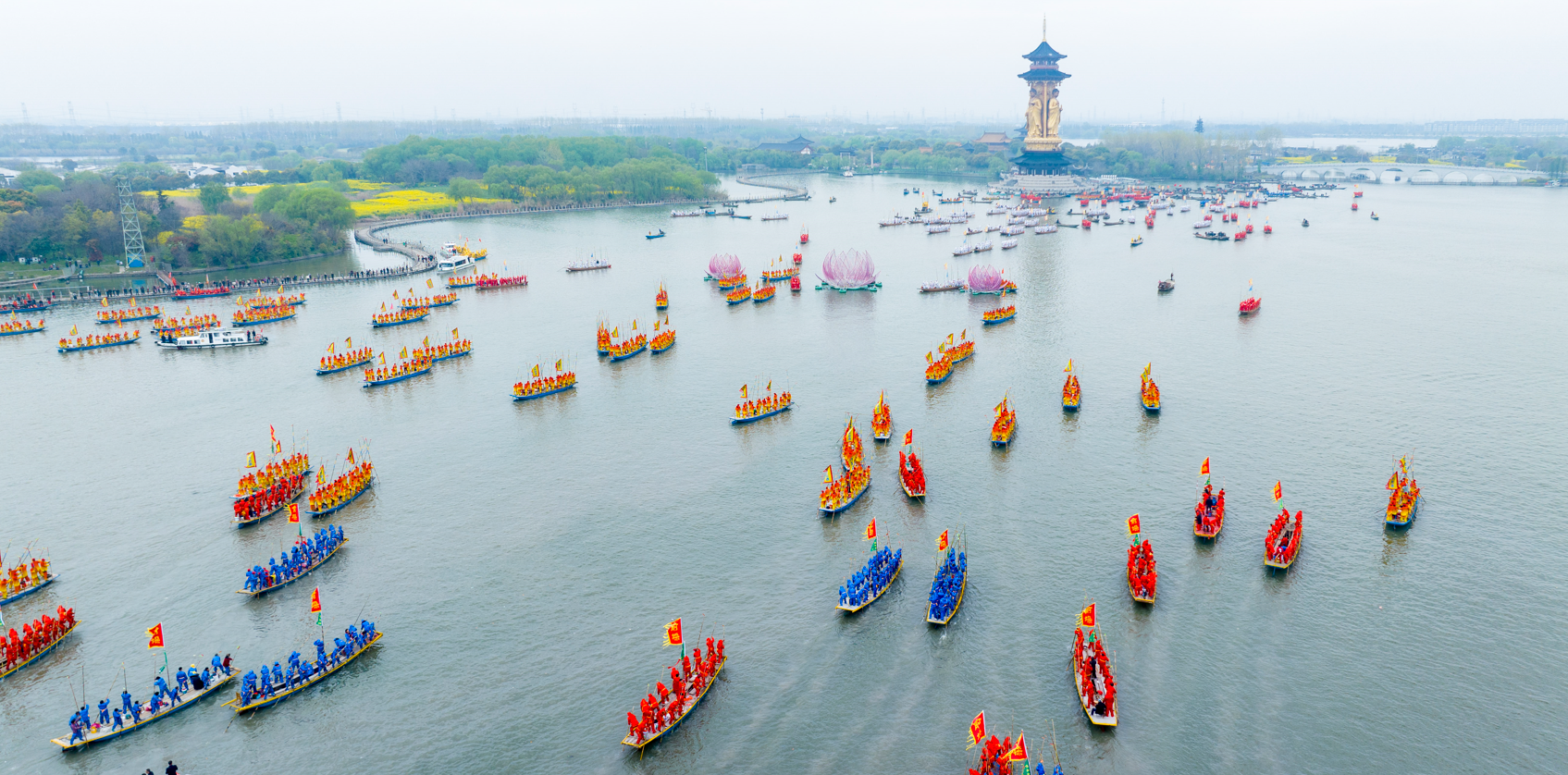 4月6日,2024泰州姜堰溱潼會船在溱湖國家濕地公園盛大開幕。五百多條各式各樣的船只和上萬名會船選手飛篙走槳,弄潮擊浪,演繹歷久彌新的民俗畫卷,F場數萬中外嘉賓、游客共同領略水鄉風情,暢享民俗文化的盛宴,見證“世界最大水上廟會”的壯觀景象。