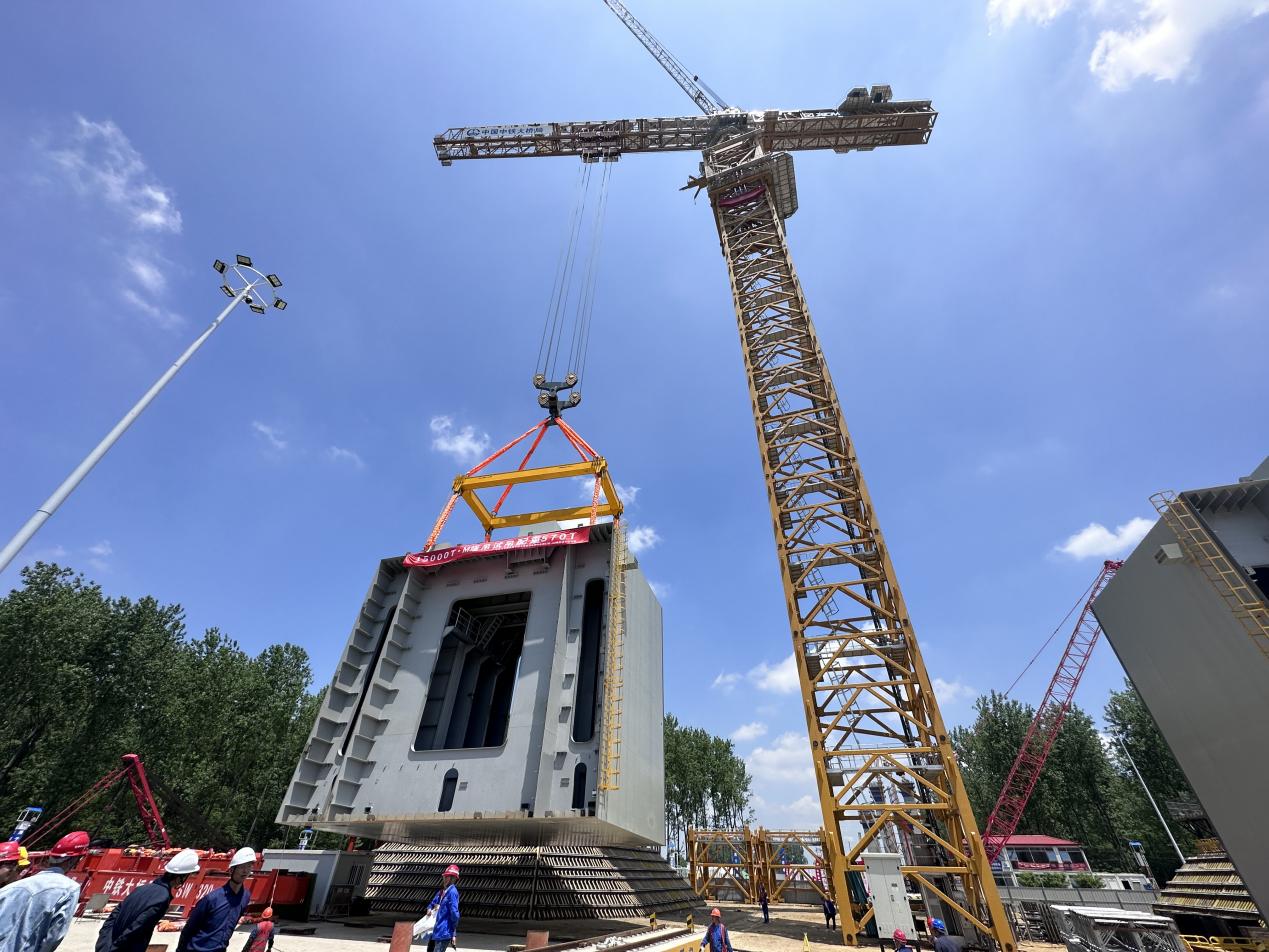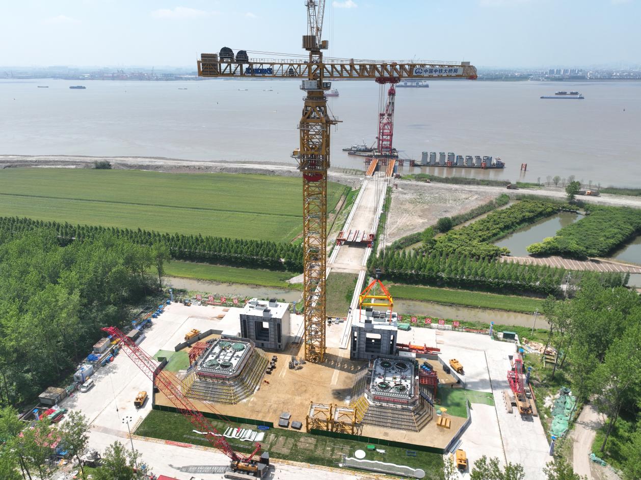 世界最大塔式起重機在靖江“登島”安裝,張靖皋長江大橋南航道橋北主塔進入“堆高”新階段