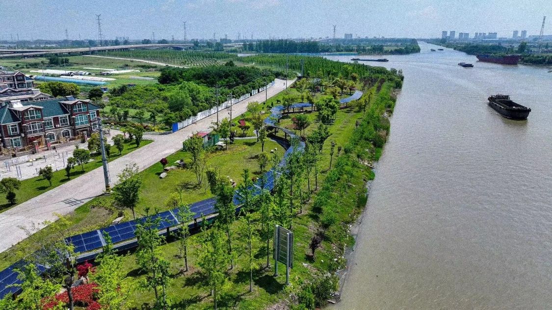 初夏時節,泰州主城區新通揚運河水面波光粼粼,河畔綠意蔥蘢,數百米長的彩虹光伏長廊筆走龍蛇,串起悠悠綠意與現代科技的默契互動。這片生機盎然的綠地有一個頗為詩意的名字——百舸生態園。很難想象,這里曾是海陵區的一處“生態疤痕”。 緊扣時代脈搏,勇探轉型新路