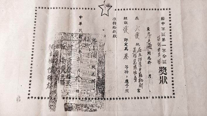 在這里,記者還看到一張房云海立三等功的獎狀復印件。獎狀是由蘇中軍區第一軍分區臺北警衛團頒發的,表彰房云海在反掃蕩中機動靈活完成任務,落款時間為中華民國卅七年貳月拾日,即1948年2月10日。 尋親組還來到房云海烈士的家鄉小海鎮無泊村,見到了烈士侄子房坤。“小時候,我聽父親講,爺爺開過酒坊、粉坊,家庭經濟狀況在本地算是比較好的。為了讓更多人過上好日子,我二叔沒有征求家人意見,悄悄報名去當兵了。”81歲的房坤說,爺爺、父親在世時曾無數次想過,有一天打開門,二叔就站在家門口,笑嘻嘻地看著大家,誰知后來等到的是一張陣亡烈士通知書。當時部隊來人說,房云海烈士是在長江邊攻打敵人碉堡時犧牲的。家里人都很傷心,但也為他感到自豪。讓長輩們遺憾的是,一直不知道房云海葬在哪里。“如今知道二叔安葬在泰州,我們全家最大的心結解了,今后每年都要去祭拜。”房坤說。 “每一次尋親,都是一次精神洗禮。為烈士尋親,讓英魂回家,是我們義不容辭的責任,我們會一直努力下去。”泰州市退役軍人事務局優撫褒揚處負責人張華說。 |