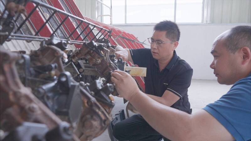 在罡楊鎮田緣家庭農場,海陵區農機服務中心的工作人員現場指導農機手檢修、調試和保養農業機械,大到發動機,小到螺絲釘,不放過任何隱患點,讓農場主在夏收前吃下“定心丸”。