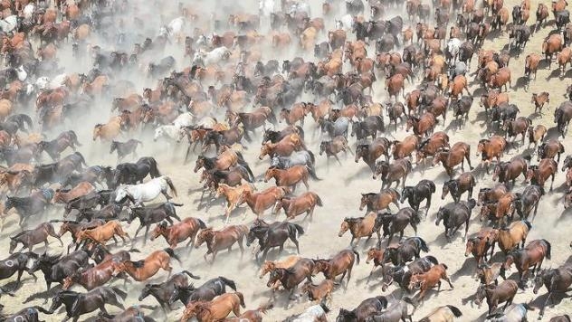 以藍天白云和遠處的群山為幕,水草豐茂的伊犁河谷昭蘇大草原上,成群的伊犁馬如離弦之箭,飛馳在一望無際的草原上。匹匹駿馬勇往直前,馬蹄聲聲響四方,上演了“萬馬奔騰”的視覺盛宴,這是開幕式上極為壯觀的一幕。本屆天馬節開幕式文藝演出由“龍馬精神耀神州”“塞外江南一日還”“蹄疾步穩向未來”三個篇章組成。精彩的文藝表演展示了昭蘇獨特的自然風光、人文景觀和民俗風情。上萬名各族群眾在現場歡聚一堂,共同慶祝天馬節開幕。