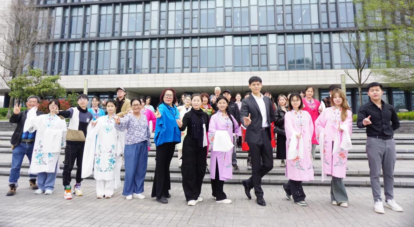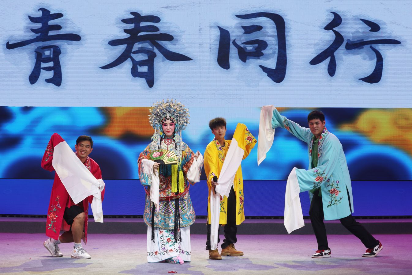 特別難忘的是,交流團一行在參訪泰州學院校區時,適逢該校京劇老師茅華梅正在校園湖畔進行京劇教學,婉轉悠揚的曲調吸引了一行人駐足觀看。茅華梅老師得知來的是臺灣高校青年交流團時,熱情地與他們互動交流,并教授有關京劇身段。 《戲說泰州》作曲人、臺灣青年許晏碩是一位創作型網紅音樂達人。他回憶,在與茅老師交流中,交流團團長邱素蕙女士就介紹了團隊中幾位臺青的愛好和專長,并提出雙方可以合作將傳統京劇與潮流說唱做結合的設想。 《戲說泰州》創作團隊成員薛子翰表示,從在校園里巧遇茅老師,到文化周上成功演出,這一切都是最好的安排,都是非常美妙的緣分。 跨界組合的創新力作
