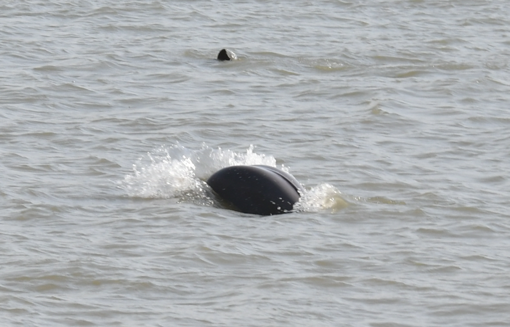 “這頭江豚從體型上看,似乎是懷孕了!”在回看照片時,汪正飛有了驚奇的發現。春季一般是江豚繁殖的高峰期,照片上的江豚肚子明顯大出許多,他判斷是懷孕的江豚。這也是調查隊首次在靖江段發現懷孕江豚。