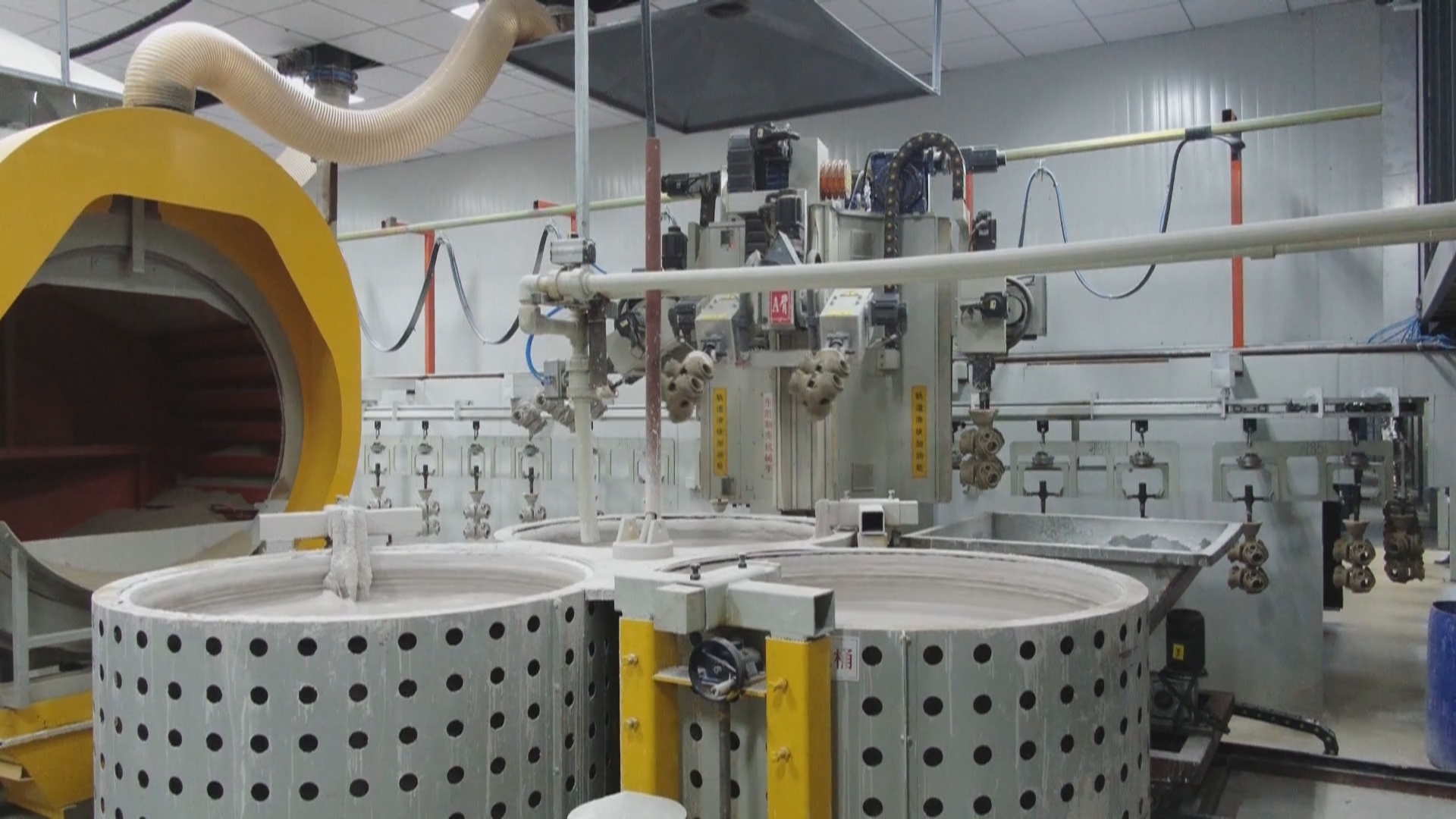 如今姜堰區已形成以太平洋精鍛、揚動股份、鑫宇精工、海龍電器等企業為龍頭的產業集群,200多家汽車零部件企業構建成了以零部件到總成、生產到研發于一體的產業生態鏈。去年實現開票銷售64.4億元,同比增長9.1%。 “離”以高能耗高物耗和低價格競爭,“一企一策”帶來巨大變革 推動傳統產業“自我更新、自我完善、自我演進”,是姜堰區擺脫傳統經濟增長方式、生產力發展、加快推動傳統產業質量變革、效率變革、動力變革的主要路徑。 泰州鑫宇精工股份有限公司成立于1996年,專業從事熔模精密鑄件的生產及機械加工。“自2010年起,我們公司累計投入3000余萬元進行智能化改造,取得了良好的經濟效益、社會效益和生態效益。”公司環保主管高旭進告訴記者。 在制造車間,一套智能制殼生產設備引起了記者的注意。“此前我們采用人工制殼工藝,難以控制粉塵污染,容易產生‘塵肺’等職業病,而且工人的勞動強度也比較大。”高旭進介紹,這套智能環保制殼設備由公司自主研發,具備一鍵智能化操作、生產全過程監控、環境智能監測反饋等功能,實現粉塵達標、降本增效。這套設備投入使用后,車間環境隨之煥然一新。