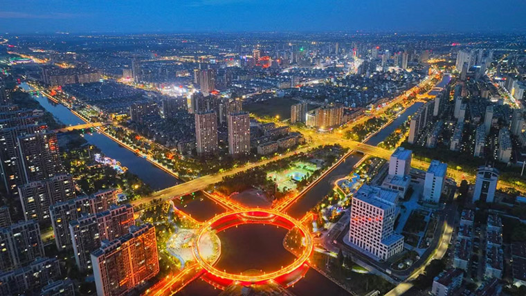 姜堰區河長辦工作人員譚金鵬介紹,他們每日通過“智慧河湖”監控巡查河道,有一次,他發現中干河梁徐段河坡有大堆秸稈,第一時間通過“智慧水利”APP與屬地對接,街道及時閉環處置、整治到位。 今年,姜堰區迭代升級“智慧河湖”管理系統2.0版,建強“數字水網”,新增5個水質監測點位、5個水位站點、6個流量站點、15個雨量站點,建成流速流量、雨量水位、水文水質自動化系統管理平臺。 堅持河湖管理與數字建設兩手發力,從無人機巡查水域岸線,到高空衛士監管濱水空間,再到自動監測站監測水位水質,監測監控、反應反饋一網覆蓋,姜堰區構建“天空地”一體化的綜合監測感知網和數字化場景,智能、高效守護一方清水。 “喚醒鄉愁” 凸顯文景共融 江、淮、海匯聚姜堰,故稱“三水”;三水沖成塘,水旋似羅紋,又名“羅塘”。姜堰得名于北宋年間鹽商姜仁惠、姜諤父子率眾筑堰抗洪。老通揚運河(古鹽運河)流經姜堰境內23.5公里,涵養水韻文脈,形成了團結包容、百折不撓的水精神。