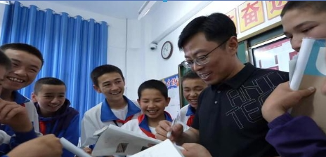 △湯恒躍和援疆老師們送教下鄉,聽課指導 培養一個,帶動一科,成長一片。越來越多當地青年教師在州縣級教學能力競賽和基本功比賽中獲獎。徒弟續燕軍也漸漸擁有了師父的“魔力”,“現在班里孩子積極性可高了,課后作業都先寫數學。”新疆孩子們的喜愛給這位新老師莫大的成就感,“我決定參加完西部計劃后爭取留下來,繼續教他們。” 青年教師有了方向,當地教育便有了希望。“要讓每一位老師成為一面旗幟,推動兩地老師聯合教研,助力昭蘇教育的提升。”湯恒躍出發時許下的小目標正一步步變為現實。 接力“援”教夢 將教育事業一代一代干下去 昭蘇地處邊境,僅湯恒躍教的班級里,就有六七個民族的學生。但有一首歌,幾乎每個孩子都會唱。 “我和我的祖國,一刻也不能分割,無論我走到哪里,都留下一首贊歌……”一年半的援疆工作轉眼已近尾聲,在新疆的最后一課,湯恒躍在歌聲中和孩子們做最后的告別。 看著孩子們投入的神情,時間仿佛回到剛援教時的開學儀式上,孩子們也是這樣在國旗下高唱國歌,看得湯恒躍熱淚盈眶。“那種感動,和在西藏時‘小我’的感動,不太一樣。”