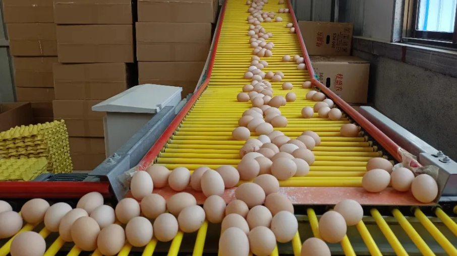日前,在泰興市新街鎮鵬源養殖有限公司,新上的成臺套禽蛋生產系統正在加快運轉,源源不斷的雞蛋掉落在傳送帶上,工人們抓緊速度打包發貨。因為有了這個新系統,雞舍里告別了高溫,整個夏季,企業每天都能保持日產雞蛋8000枚以上。