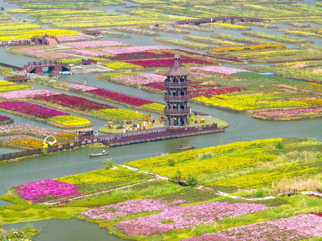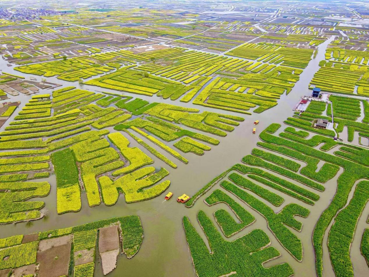 自被選定為首批生態產品價值實現機制試點以來,興化市憑借優越的自然資源稟賦和生態條件,致力于開辟一條發展與保護和諧共存的新道路,既守護“綠水青山”,又贏得“財富之源”。 以垛田為基,探尋農業經濟新篇 金色的油菜花在垛田里搖曳生姿,乘一艘搖櫓船,在花海間穿越前行,是興化獨一份的浪漫。 以花為媒,歷經16年接力打造,興化巧妙將油菜花海與垛田風貌完美融合,形成了“花開垛上、垛在花間、碧水縈繞、金黃無邊”的奇景,借助如網的水系,油菜花海被分割成一塊塊方田,花田、湖中小島、流水、搖櫓船交織在一起,織就了一幅金黃色的春日畫卷。