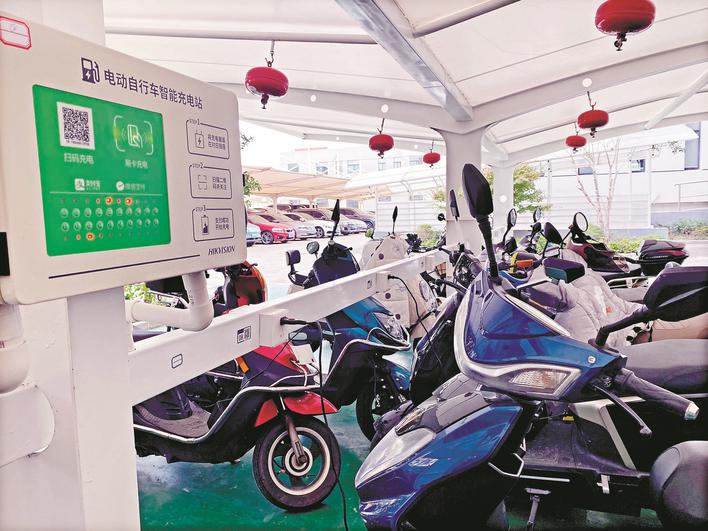 下一步,泰州市將繼續從實際需求出發,持續推動充電樁建設工作。2025年,全市計劃新增充電點位1.8萬個,到明年年底基本滿足小區居民電動自行車安全停放充電場所需求。 社會 各單位讓員工“滿電回家” 破解電動車“充電難”,光靠小區自己挖潛還不夠,泰州市相關部門也巧用心思,在小區以外的其他社會鏈條上求突破。 10月30日上午,記者在泰州市教育局辦公樓后側看到,充電棚內整齊停放著一排排電動自行車,車棚內充電插座安全規范、滅火器配備到位。每個插口旁邊,都印有二維碼,職工使用手機掃碼后即可充電。此外,充電樁還安裝斷電保護裝置,一旦充電時出現異常情況,會迅速切斷電源、發出警報。