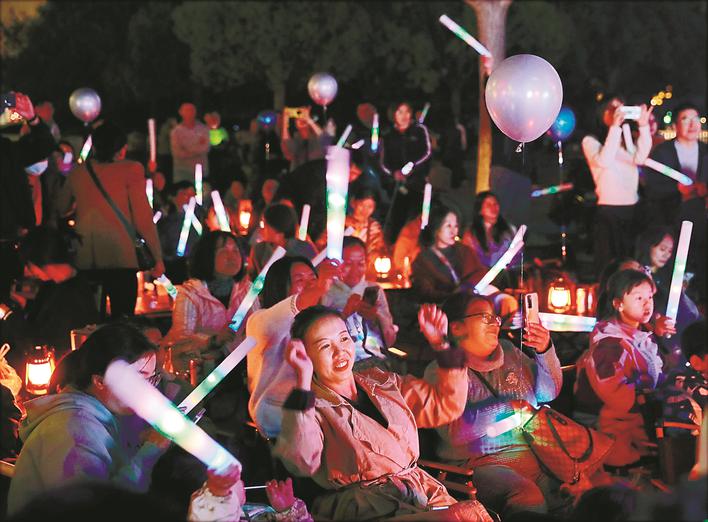臺上,年輕的歌手和樂手盡展才華;臺下,座無虛席,既有遠道而來的樂迷,也有散步路過的附近居民。大家或手舞熒光棒,跟著音樂一起歌唱,或手持手機,記錄下精彩瞬間,充分享受音樂帶來的松弛感。“沒想到在家門口也能欣賞到音樂會,氛圍很嗨,超級治愈!”00后上班族小于說。