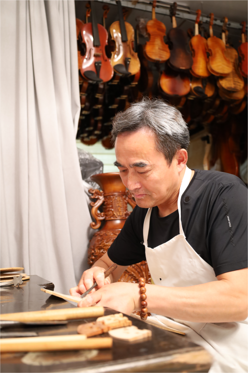 △呂官寶在個人工作室里制作小提琴 從父親手中接過制琴的接力棒,呂官寶還自學繪畫、雕刻技藝,制琴水平日益精湛。如今,他已是國家二級制琴師。 “家里堆的都是制琴木料。用風干了三五年的老料,才能有更好的琴聲。”呂官寶說,黃橋人制琴實在,不怕花時間。 在黃橋,像呂官寶家這樣的提琴工作室有很多。進入21世紀,面對市場同質化競爭,黃橋一邊沉淀,一邊通過人才、環保等要素,積極謀求轉型升級,并賦能中小微制琴企業發展。 特別是面對打磨粉塵、噴漆污染等問題,當地政府出資建立了全國首個專為提琴提供打磨、噴涂的樂器公共服務平臺,通過精細化、集約化管理,一舉解決中小微企業發展痛點。