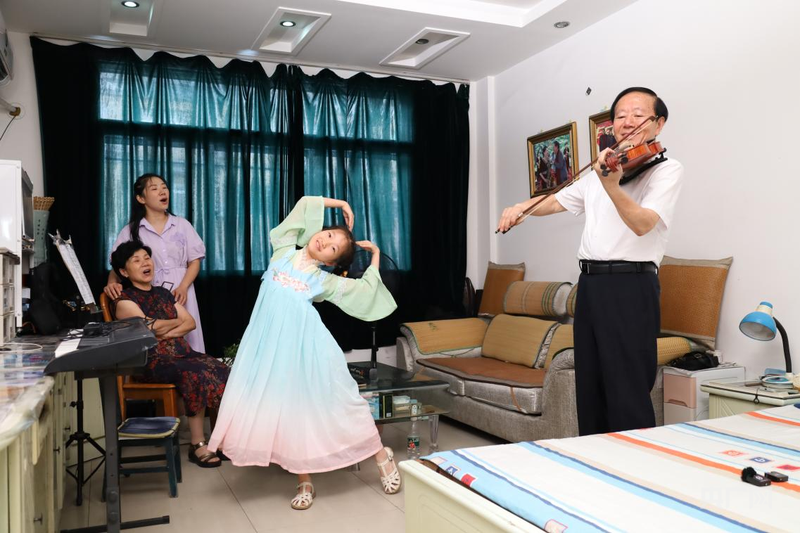 △黃橋企業內,工人分工完成提琴制作各環節 數據見證變化。截至2024年6月,黃橋擁有提琴生產及配套企業220多家,3萬多名從業工人,年產各類提琴100多萬把;提琴產量占國內總產量的70%以上,占全球40%左右的市場份額。黃橋不僅成為“中國提琴產業之都”,也成為提琴行業生產標準制定者。 “我的琴最早賣給教琴的啟蒙老師,后來是音樂學院的師生,現在也出口國外,走上了世界舞臺。”呂官寶對照著密密麻麻的訂單,笑著介紹。 琴聲漫于煙火中 樂器制造業連通城鄉的發展,其更深遠的影響在于黃橋的音樂之路越走越寬。從提琴小鎮到琴韻小鎮,一字之變背后是一代又一代人的努力。 呂官寶的女兒呂逸菲,2022年考取了沈陽音樂學院附屬中等音樂學校的大提琴演奏專業;外甥馬海峰已經是黃橋鎮東街小學的音樂老師。 “逸菲是鎮上第一個走上大提琴專業道路的孩子,我們身邊越來越多孩子開始報考音樂學院。”呂官寶介紹,受益于制琴文化,小鎮學琴的氛圍一年比一年好。 只做琴不會琴,曾是黃橋人的遺憾。如今,黃橋絕大多數學校普及了樂器教育,小提琴、吉他、尤克里里、葫蘆絲……音樂的種子在孩子們心中生根發芽。