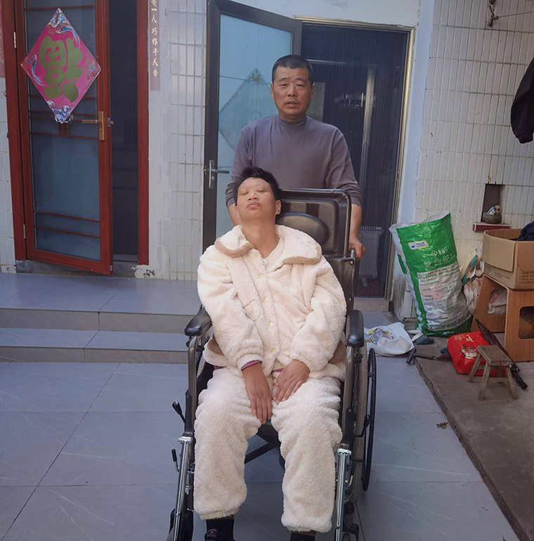 2014年8月的一天,妻子小顧想不開,趁潘勇外出做工,從家里悄悄爬出,翻滾到屋后河邊想了結自己,鄰居姚嬸發現后,把她抱回家,潘勇感動得流下了眼淚。從那以后,來他家串門的鄰居更多了。 房莊村村干部主動按照政策幫潘勇妻子辦理了長護險和殘疾人補助,2019年潘勇的女兒考上大學、父親又患癌病危,村黨支部書記王素芳發動干群捐款2萬多元,平日里,左鄰右舍經常伸出援手,送來一些魚肉和營養品。 為了回報社會,潘勇拿起愛的接力棒,關心村里有困難的老人,空閑的時候,就幫助他們檢查電路、換燈泡修家電。誰家有個大小事情,他主動去幫忙,還帶頭參加村里公益活動,村民們提起他,無不豎起大拇指稱贊。 多少個繁星璀璨的夜晚,當數千家庭歡聲笑語、舉杯相慶的時候,潘勇用熾熱的胸膛,將妻子挽在懷中,夫妻間每一個眼神都飽含深情,每一個動作都充滿了相濡以沫的愛意。對未來,潘勇無怨無悔:“有她在家就在,只要我能動手就不會放手,我就是她的手。”