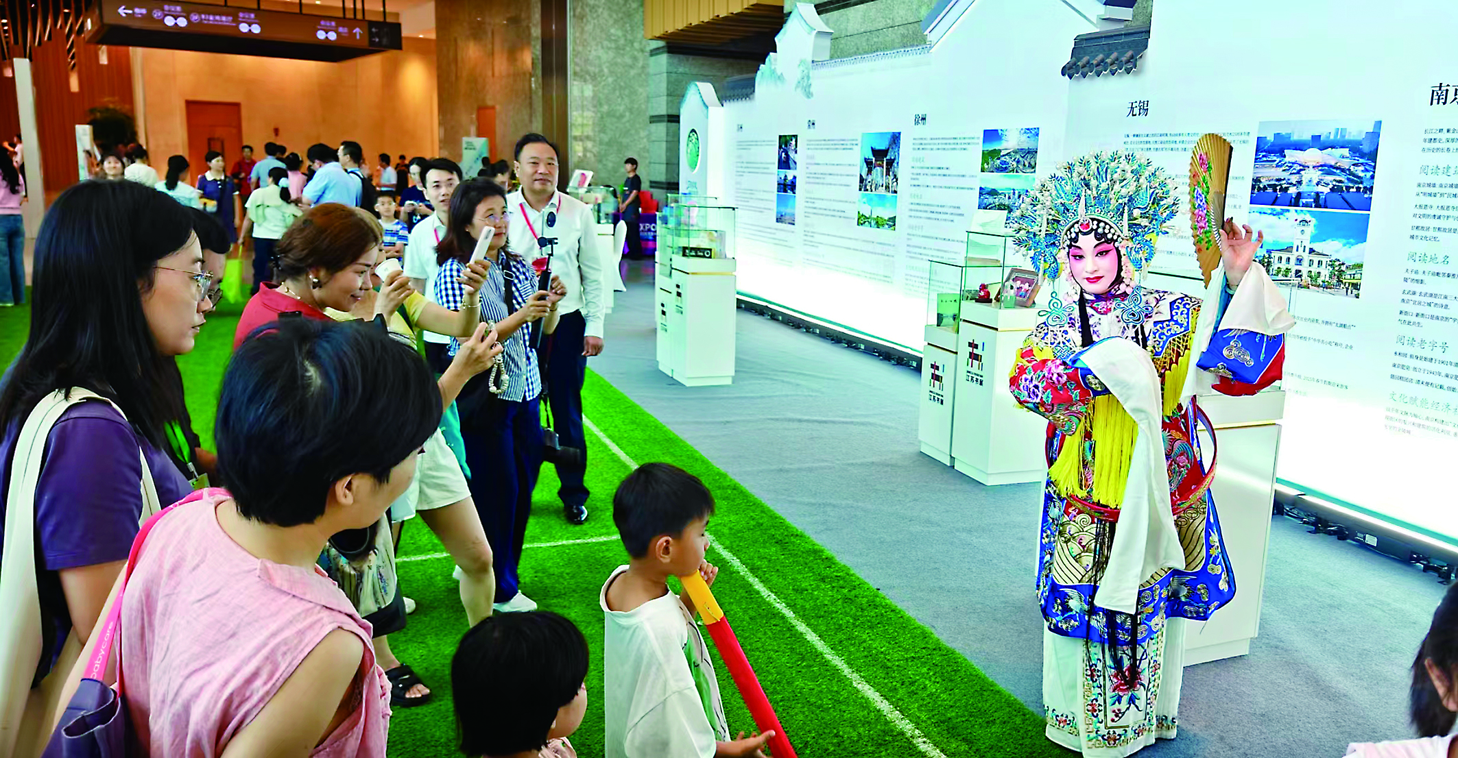 4日下午,在“‘文’有讀城、‘武’有蘇超——‘文武雙全’新江蘇”專題展區,泰州梅蘭芳京劇團00后青年演員姚玟萱在特別鋪設的綠茵場旁表演《貴妃醉酒》選段,其婉轉的唱腔、優美的身段瞬間點燃全場,贏得觀眾陣陣喝彩。 活動現場還設置了京劇化妝展示區和互動體驗區。演員們完整展示了從打底到勾臉、從貼片子到頭飾佩戴的化妝全過程,吸引眾多觀眾駐足觀看。小朋友們積極參與京劇臉譜彩繪,在趣味中感受國粹藝術的獨特魅力。 “歷史文化是城市的靈魂。”泰州市委宣傳部文藝處相關涸鶉吮硎荊舜尾握共喚齠醞庹故玖頌┲�“三水”交融孕育出的獨特城市氣質,也讓泰州歷史文化名城的形象更加立體鮮活,讓更多的人了解泰州、愛上泰州。 |