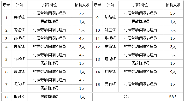 為進一步加強基層公共服務(wù)平臺建設(shè),充實人社基層平臺服務(wù)隊伍,根據(jù)《關(guān)于進一步加強人力資源和社會保障基層公共服務(wù)平臺建設(shè)實施意見的通知》(泰政辦發(fā)〔2014〕108號)等文件精神,決定面向社會公開招聘基層公共服務(wù)公益性崗位工作人員58名,其中村居勞動保障協(xié)理員52名、民政協(xié)理員6名,現(xiàn)就有關(guān)招聘事項公布如下: