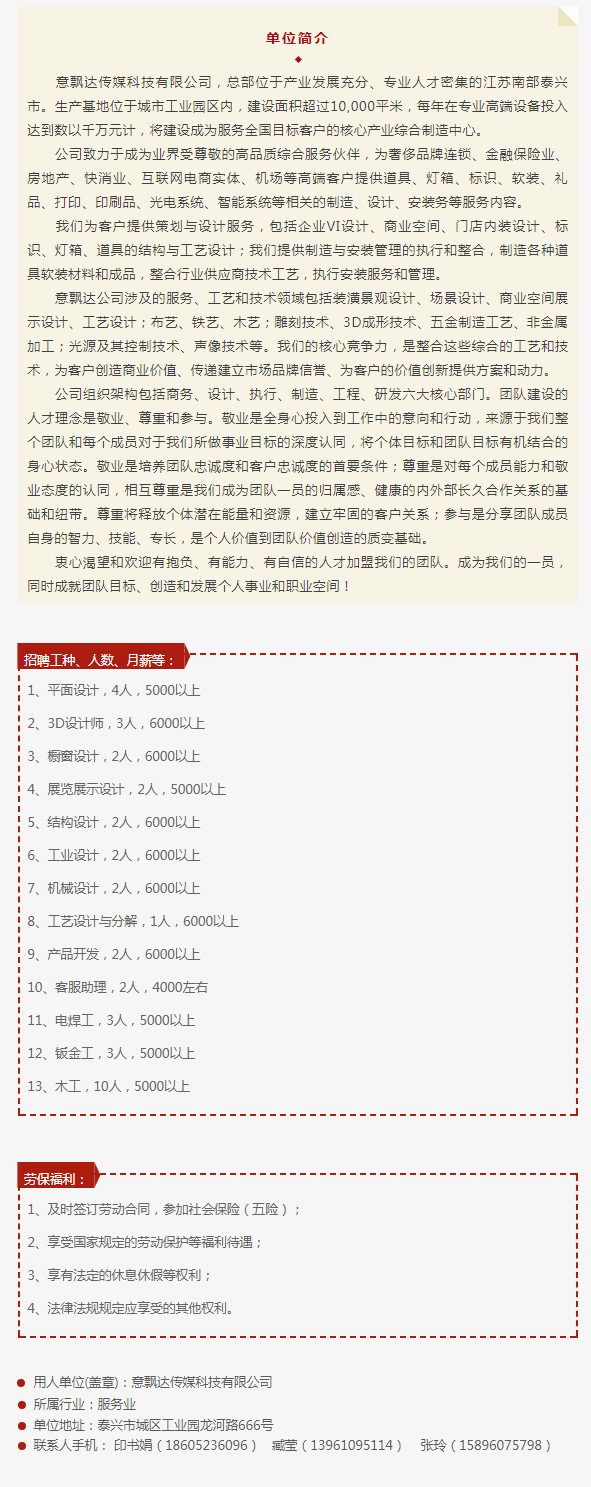 意飄達(dá)傳媒科技有限公司2019招聘簡(jiǎn)章
