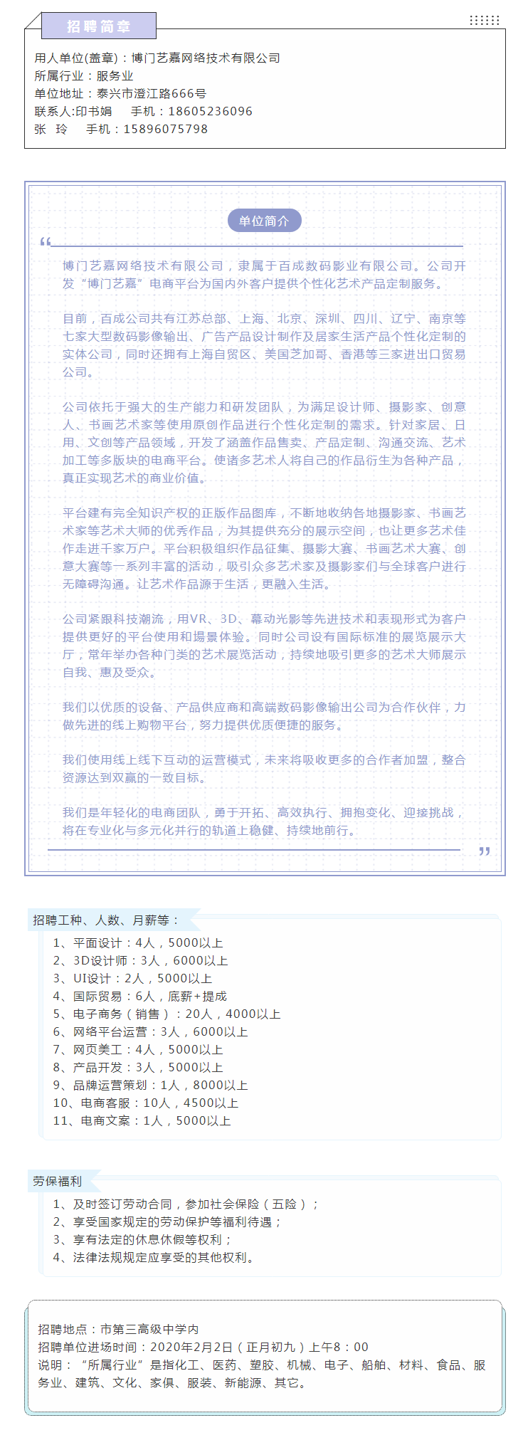 博門(mén)藝嘉網(wǎng)絡(luò)技術(shù)有限公司招聘簡(jiǎn)章