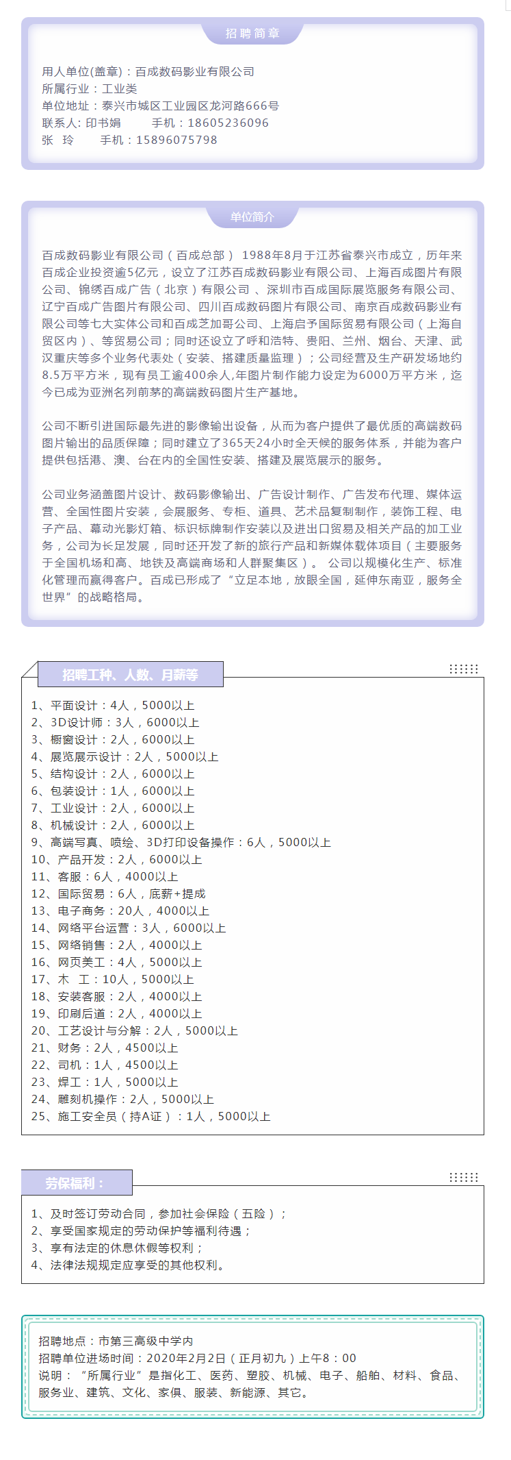 百成數(shù)碼、博門(mén)藝嘉2020年新春大型招聘會(huì)暨人才交流洽談會(huì)