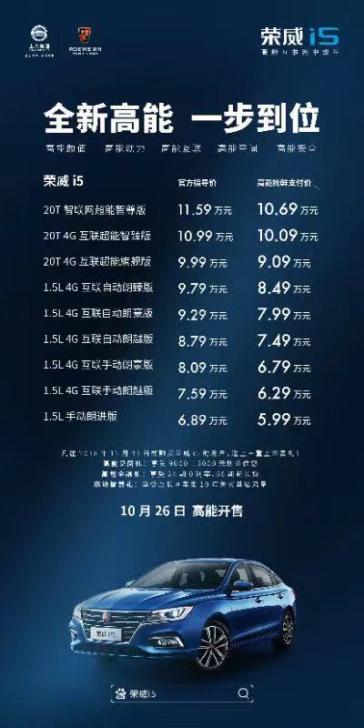 全新高能榮威i5正式上市 高能搶鮮價(jià)5.99萬(wàn)起!
