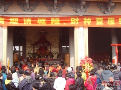 從大門口走60步甬道,便是有三個門洞并排組成的二門,二門東南是呂祖宮,西南是土地祠和地藏殿。二門為樓閣式建筑,樓下是班房,塑有頭戴紅帽,身穿皂衣的三班衙役,他們神態各異,有的肩扛回避肅靜牌,有的手執大板、水火棍、繩索、枷鎖,還塑有馬夫、馬匹等。二門的樓上是畫棟雕梁的戲臺,戲臺前柱上的對聯為“清歌鳴盛世,杰閣勢凌云”。戲臺之精美在江蘇境內是上數的。相傳戲臺的鑼鼓聲能催動盤龍振奮、鬼神激昂。每年正月里演社戲、平常逢初一月半、出會大典,多為許愿還愿人家出錢,邑人免費觀看。戲臺朝北下方就是號稱泰興城隍廟活寶的站不滿廣場。主殿與廂房形成四合院。說來真怪,不管是什么名班演出,或是廟會喜慶,人山人海走進這廣場,人們感覺不到擁擠,都能找到自己合適的位置,人再多兩邊廂房的廊下都是空空的,廣場中央兩株大銀杏樹枝繁葉茂至今尚存。 廣場北是城隍廟大殿,上四級臺階為大殿的前平臺又稱閱臺,三面有石圍欄,東西兩側也有石臺階上下。閱臺中央一尊巨大的鐵鼎香爐(此鼎毀于1958年大煉鋼鐵)。再上四級臺階便是城隍廟主殿,殿宇雄偉壯麗,殿內飾有雕鑿精美的藻井,抬頭看不見屋梁,號稱無梁殿是城隍廟的第二寶。大殿前殿、后殿連成一體,中間用錫板制成天溝,走進大殿有莊嚴陰森的感覺。 正殿屋脊上飾有一極大的金色碎瓷葫蘆,腰間系護有手臂粗的四根鐵索,泰興城內抬頭就能見到它祥光四射,號稱第三寶。 大殿的后堂是一幢五開間重檐硬山樓宇,莊重結實,屋脊為二龍戲珠,上有“風調雨順,國泰民安”八個大字。二十世紀四十年代,因戰爭有一發炮彈擊中后堂脊上的龍珠,龍珠雖毀其它未造成破損。 大殿和后堂是盤龍的心臟,殿前的東西廂長廊房是龍身。左前龍爪是大門東首的關岳廟,關岳廟的塑像全部裝了金,進門就見金光燦燦,合五行中金。 大殿后東邊的火星廟是盤龍左后爪,合五行中火,它與關岳廟合為陽。 大門西的文昌宮是龍右前爪,后首的三官殿是右后爪,兩者為陰。 后堂樓后有土山為龍尾合五行中之土,整個廟堂木質結構,殿閣廊房為木。廟前的水井,大殿西邊是放生池,廟后是得道成仙吳泰和的升仙池為五行中水,老一輩的泰興人都知道城隍廟是龍形風水寶地。 大殿后照壁南,塑有一尊固定不動的老城隍爺像,由于年久香煙熏染,通體已變成黑色,形象高大莊嚴,老城隍前神龕里,雕龍圈椅上,坐著金面長須、頭戴珠冠、身著蟒袍、左手腕擔白絹、右手執折扇的城隍爺,他半開慧眼,伏在條案上威嚴肅穆,神龕上方高懸紅底金線繡成的敕封“忠佑伯”府的龍鳳圖案帷幕,神座兩邊的對聯是“休來求我,只去問心”,神龕上方屋頂高懸有“光明正大”、“燮理陰陽”等多塊金字大匾。 后堂供奉的女媧娘娘,慈眉善目,儀態萬方。兩邊的十位仙女手執各種樂器吹拉彈唱,各具風采,盡領風騷。后堂的金面城隍爺若有所思,成竹在胸,兩位城隍娘娘好似兩位精明能干的賢內助,端坐繡房。 各地因建廟的年代不一,建制也不盡相同。泰興城隍廟的二十四司,在我們拜訪到的對城隍廟有記憶的老年人中已難以復原,其中能記出的有佛教內涵的東廊天堂司,三尊金佛接引為善亡靈往生極樂。有與十八層地獄內涵相同而合塑的如豐都司,金面豐都大帝頭戴十二流蘇皇冠,手捧玉圭,神色莊重,掌管豐都地獄。 有歷史人文教育的龍圖司:包拯為官鐵面無私。老龍司:唐太宗李世民約魏征下棋,魏征夢斬老龍。薛仁貴死前現身白虎被兒子箭射,還有二郎神射九頭鳥,已說不清是什么司了。城隍廟門左邊的關岳廟塑像,因為關羽、岳飛都是牌位,關羽的大將周倉塑像出自名家之手,神態威武坦蕩,是塑像精品中之極品,可惜毀于文革。 二門左的呂祖宮是道家神仙呂純陽殿宇,右邊的土地祠是專門供奉土地爺的殿宇,土地爺和土地娘娘慈眉善目,神態安詳,一付長者風度,土地爺是四鄉八鎮土地公公的總管,官階較高,管行政。 城隍廟奉供塑像,弘揚的主題是與人為善,裝飾的對聯也不例外,前面已說過了石坊、大門、戲臺、城隍神龕上的對聯,大殿門口的“想前世早已注定、何必急急忙忙干這歹事,料今生不能長在、落得干干凈凈做個好人”。為清代優貢舉人朱銘盤書寫。大殿內柱上還有“作惡必報,不報祖上有余德,德盡必報,行善必昌,不昌祖上有余殃、殃盡必昌”。“萬惡淫為首,百善孝為先”。“作惡終究不好,行善到底無差”。城隍廟的對聯極多,因為年代久遠,人們已無法全部憶出。 城隍廟的道士們歷來與人為善,深得邑人敬愛,更有為民謀利不惜赴湯蹈火,留下了千古佳話。 明洪武年間。火星廟一位道長喜食鎮江醋,派小道童吳泰和上街去買,總能如愿,一日道長的師兄從鎮江來火星廟,認出了吳泰和小道童是常到鎮江道觀附近醬園店買醋的泰興道童,談及此事說你老兄實在闊派,平日里吃醋還要派人去鎮江采辦,道長承認平時喜食鎮江醋,但從未派道童專程去鎮江,直至后來找遍泰興城,沒尋到他們廚房用的醋,才確信師兄講的是真話,吳泰和非等閑之輩。 城隍廟的廟會年年有,但聲勢最大的是逢天旱請禪師菩薩求雨辦禪師懺和出會。縣衙的求雨決定下達到城隍廟之后,城隍廟邀商會、佛教共同議事,商會通知全縣菜場飯店禁賣葷菜,再攤派各行會的人力任務,諸如那一行派多少人執旗打傘。哪一家派人抬轎、挑馬夫、燒肉香等等。請禪師菩薩去