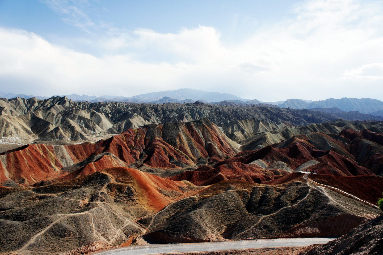 早餐乘車赴張掖,參觀《三槍拍案驚奇》的外景地—【張掖丹霞地質公園60元(游覽2小時)】,張藝謀執導的影片《三槍拍案驚奇》在全國各地公映后,有贊有貶,甚至批評多于肯定。不過,許多觀眾在感慨“這不過是一部拉長了的小品”的同時,卻驚嘆于片中的外景地——色彩斑斕、恢宏大氣的張掖丹霞地貌。張掖丹霞地貌面積達536平方公里以上,是我國干旱地區最典型和面積最大的丹霞地貌景觀,是中國丹霞地貌發育最大最好、地貌造型最豐富的地區之一。姜文執導的電影《太陽照常升起》、張藝謀的《三槍拍案驚奇》、錢雁秋編導的電視連續劇《神探狄仁杰(第三部)》等影片均把該景區作為外景拍攝地。乘車赴喜峪關后可欣賞嘉峪關日落,晚大唐美食街品嘗特色小吃。