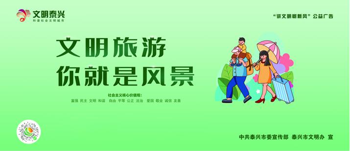 文明旅游,從我做起 從現在做起,從點滴做起 讓我們一起攜手 共同擦亮泰興文明旅游這張名片吧! |