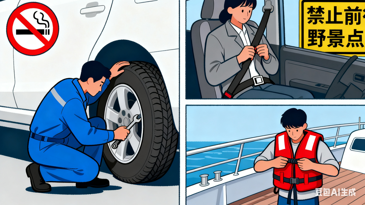 安全筑防線:自駕游前全面檢查車況,杜絕疲勞、酒后駕駛。乘坐交通工具時全程系好安全帶,乘坐游船需按規(guī)定穿救生衣。不前往未開發(fā)、缺乏安全保障的“野景點”,慎選高風(fēng)險項目,注意安全用火。