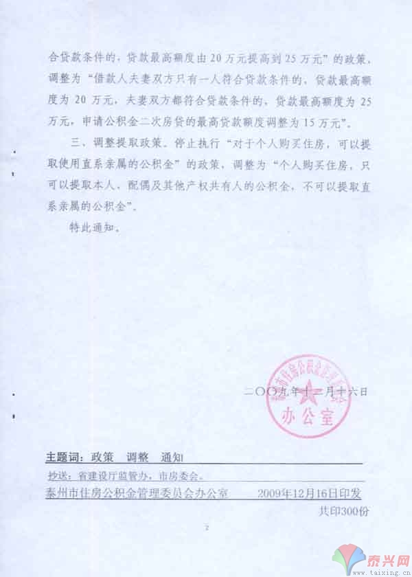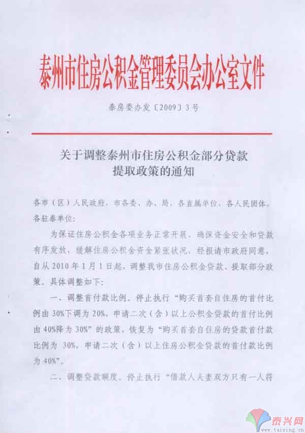 關(guān)于調(diào)整泰州市住房公積金部分貸款提取政策的通知