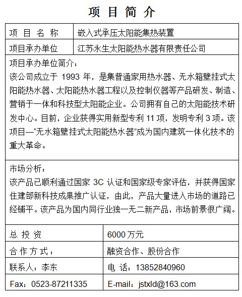 嵌入式承壓太陽能集熱裝置