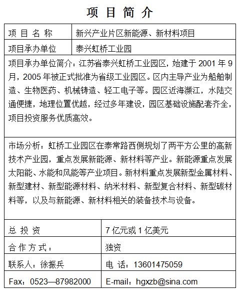 新興產業片區新能源、新材料項目