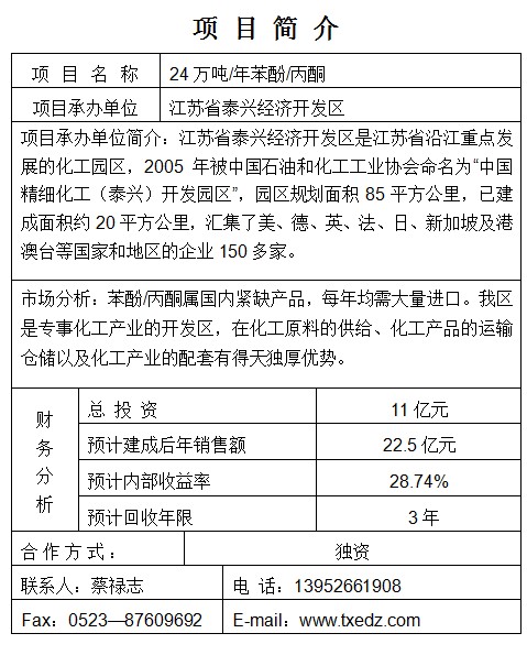 24萬噸/年苯酚/丙酮