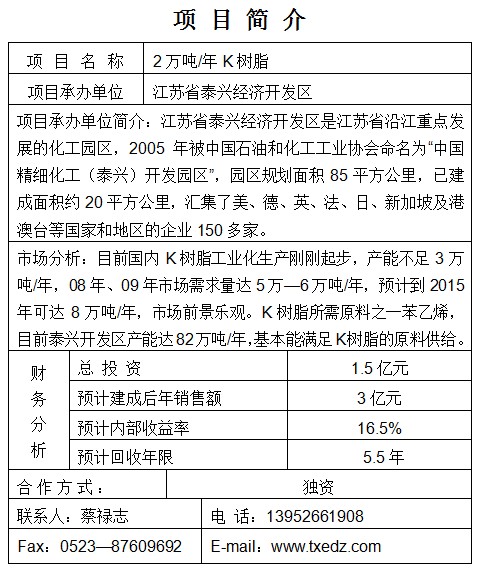 2萬噸/年K樹脂