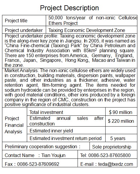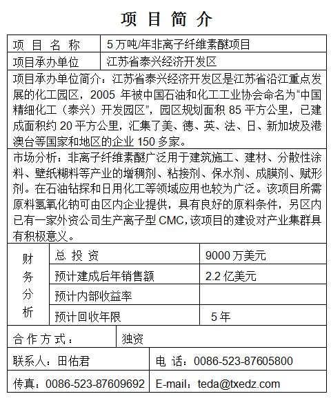 5萬噸/年非離子纖維素醚項目