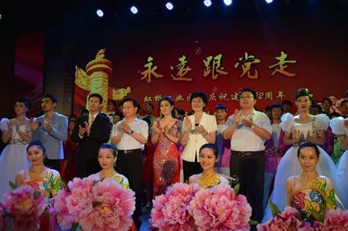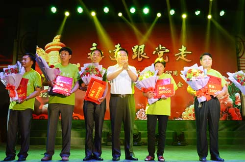 優秀動遷工作對象受表彰 (記者 孫紀剛)6月28日晚,江蘇中丹集團禮堂內旌旗招展,歌聲嘹亮。虹橋工業園區黨工委舉辦的“永遠跟黨走”慶祝建黨92周年暨“雙先雙優”頒獎典禮隆重開幕,再次在區鎮黨員干部當中掀起了一股爭先創優的熱潮。市委常委、組織部長錢娟,市委常委、常務副市長劉榮華,副市長、虹橋工業園區黨工委書記、虹橋鎮黨委書記孫群觀看了精彩的文藝演出,并為部分先進基層黨組織、優秀共產黨員、先進征地拆遷工作人員、優秀征地拆遷對象戶頒獎。