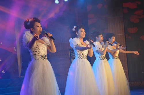 雪人組合深情演唱《唱支山歌給黨聽》 虹橋工業園區機關合唱隊表演的開場歌舞《在燦爛陽光下》,熱情謳歌了偉大的中國共產黨成立92年來的光輝歷程;《我們共產黨人好比種子》、《江山》等經典紅歌,詮釋了“只有共產黨才能救中國“的永恒真理,膾炙人口的《團結就是力量》、《紅星照我去戰斗》、《我們走在大路上》,歌舞《虹橋夢•中國夢》彰顯了洪橋工業園區廣大干群追逐中國夢、實現虹橋夢的堅定信念和壯志豪情;雪人組合演唱的《絨花》、《唱支山歌給黨聽》,全場觀眾和泰興市第五高級中學合唱隊一起演唱的《沒有共產黨就沒有新中國》不斷把晚會推向高潮,激勵著廣大干群奮力拼搏,奮勇向前。